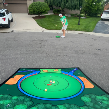Experience convenient and effective golf practice at home with this innovative mat. Perfect for golfers eager to improve their skills while saving time.